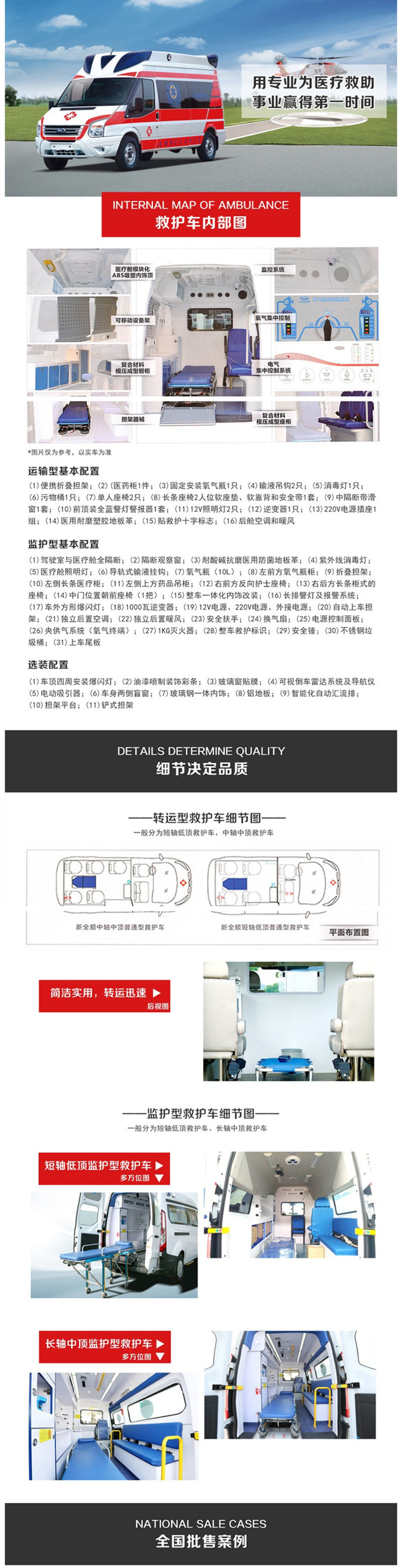 福特V362中轴中顶转运型救护车