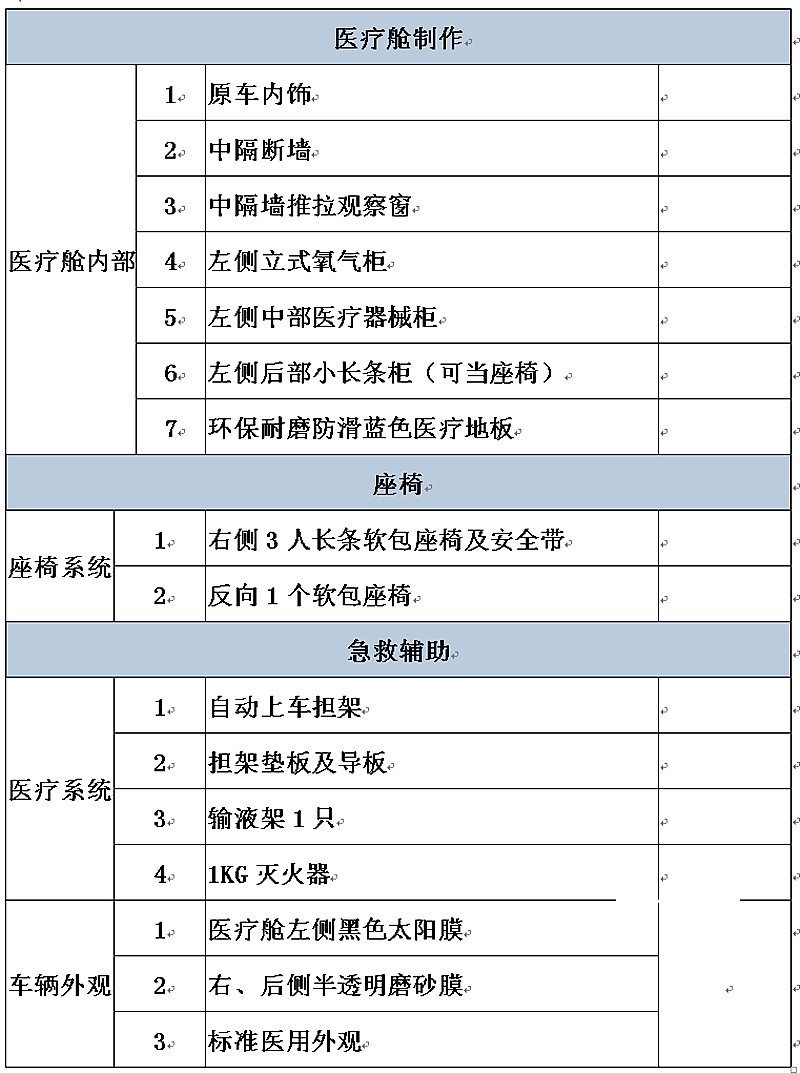 运输型配置清单