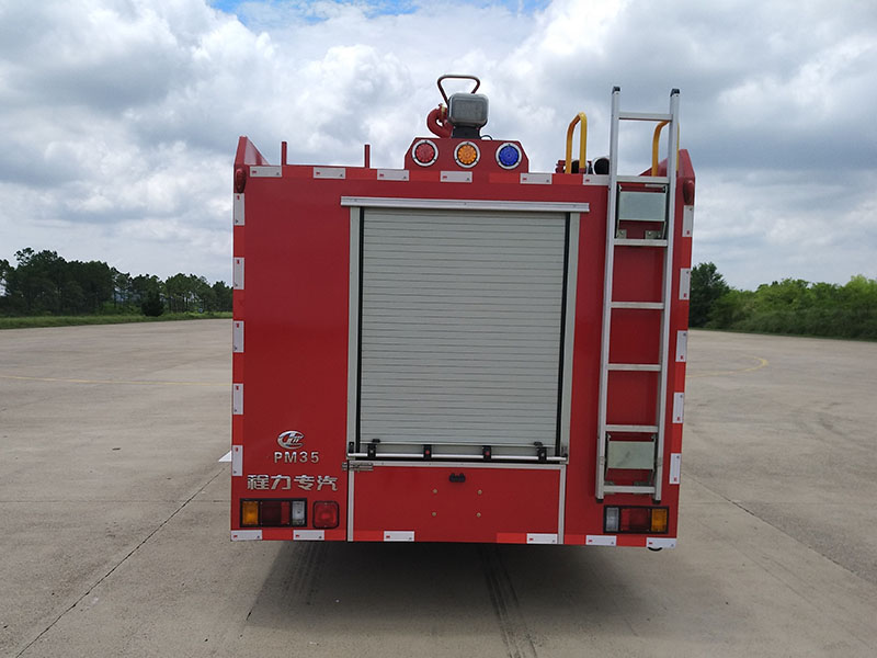 2、后部为泵室,配有仪表板及操作系统,器材箱和泵室均设带锁卷帘门。框架焊接结构,并确保其强度和刚度。